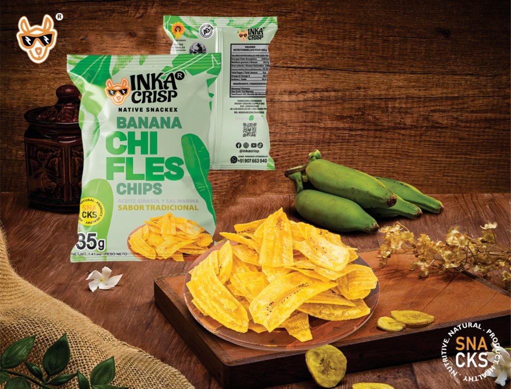 Descubre el auténtico sabor Tradicional de los Chips de Plátano Inka Crisp, sazonados con sal marina y cuidadosamente preparados con aceite de girasol de la más alta calidad. Elaborados con plátanos verdes cultivados en los fértiles campos del norte del Perú, en las regiones de Tumbes, Piura y Lambayeque, cumpliendo estrictamente con los estándares de SENASA para garantizar una cosecha saludable y de sabor excepcional.